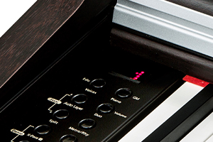 Корпус у стилі спинет доступний з двома варіантами покриття – імітацією палісандра та матовим білом, має вбудовану подвійну стереосистему на 25 Вт, пюпітр та висувну кришку клавіатури.
